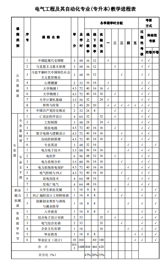 2026级《电气工程及其自动化》-教学计划